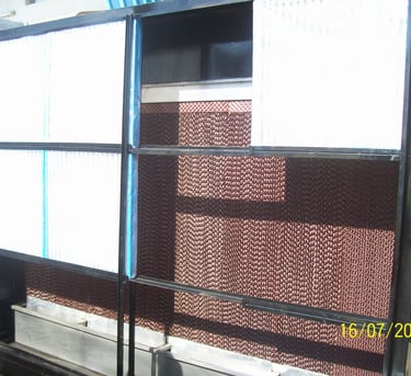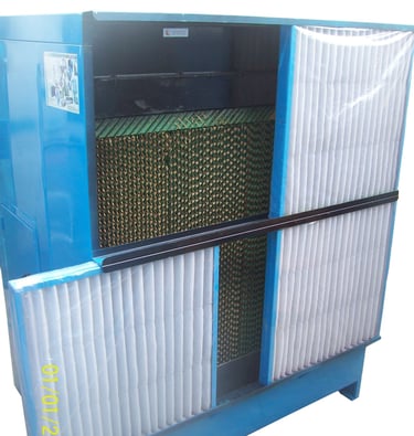 Spray Type Coolers by Perkins Blowers are designed for high-temperature, dusty industrial areas where traditional pad-based cooling may be less effective. These coolers use a high-pressure water spray system that atomizes water into fine droplets. The droplets absorb heat from the passing air, producing a cool and humidified airflow.