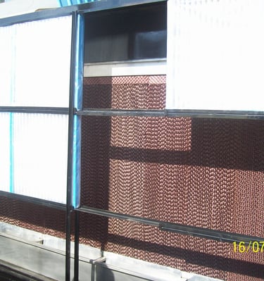 Perkins Cellulose Pad Type Coolers use evaporative honeycomb cooling pads to reduce air temperature naturally. As warm air passes through the water-soaked cellulose pads, the water evaporates and absorbs heat from the air, delivering a continuous stream of cool, fresh air throughout your facility.