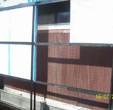 An air washer is an air-handling system that cools, humidifies, and cleans the air using the natural evaporative cooling process. Hot air passes through water-saturated media, where dust, airborne contaminants, and heat are removed before the air is supplied into the workspace. Unlike conventional air conditioning, air washers ensure 100% fresh air circulation, which is essential in food processing areas.