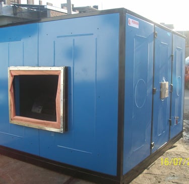 An industrial Evaporative Airwasher is a cooling and air treatment system that works on the natural principle of evaporation. Hot outside air is drawn through water-saturated cooling pads, where it gets cooled and cleaned before being supplied into the workspace. Unlike conventional air conditioners, airwashers provide 100% fresh air, making them ideal for large industrial and commercial spaces.